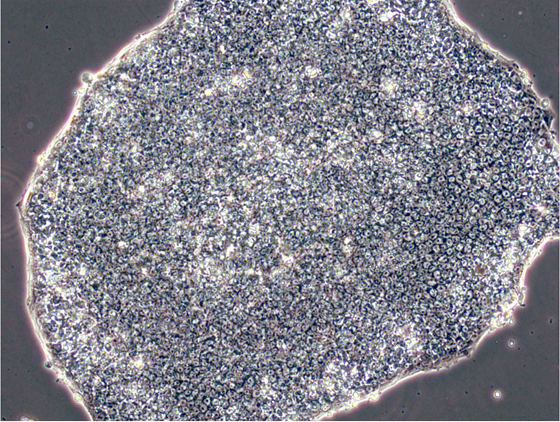 A human embryonic stem cell colony cultured in the newly developed medium.