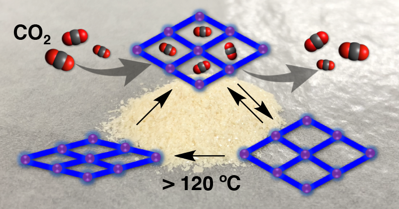 The pores in the crystal remain open after the release of CO2, but they can be collapsed easily with heat (Kyoto University / iCeMS / Kitagawa Lab)