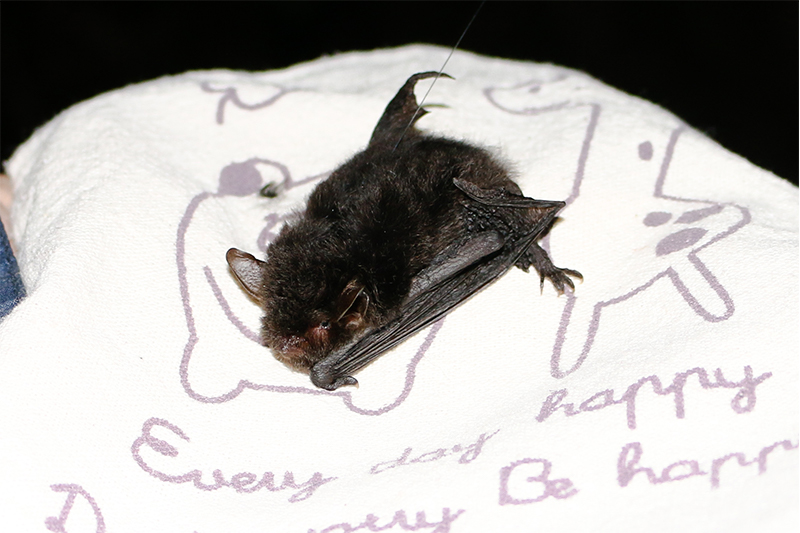 A successfully captured Yanbaru Whiskered Bat. The bats were tracked using VHF transmitters (Kyoto University / Jason Preble)