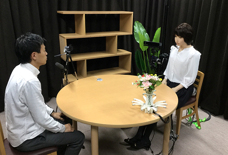 The experimental set up when the subject (left) talks with ERICA (right) (Kyoto University / Kawahara lab)