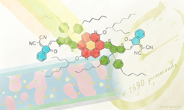 The power-generating layer in organic photovoltaics contains molecules that either donate or accept electrons. Light is absorbed by this thin layer, exciting the molecules, which generate charges that go on to form an electric current. But for light to be efficiently converted to electricity, the electron-accepting component needs to stay excited.