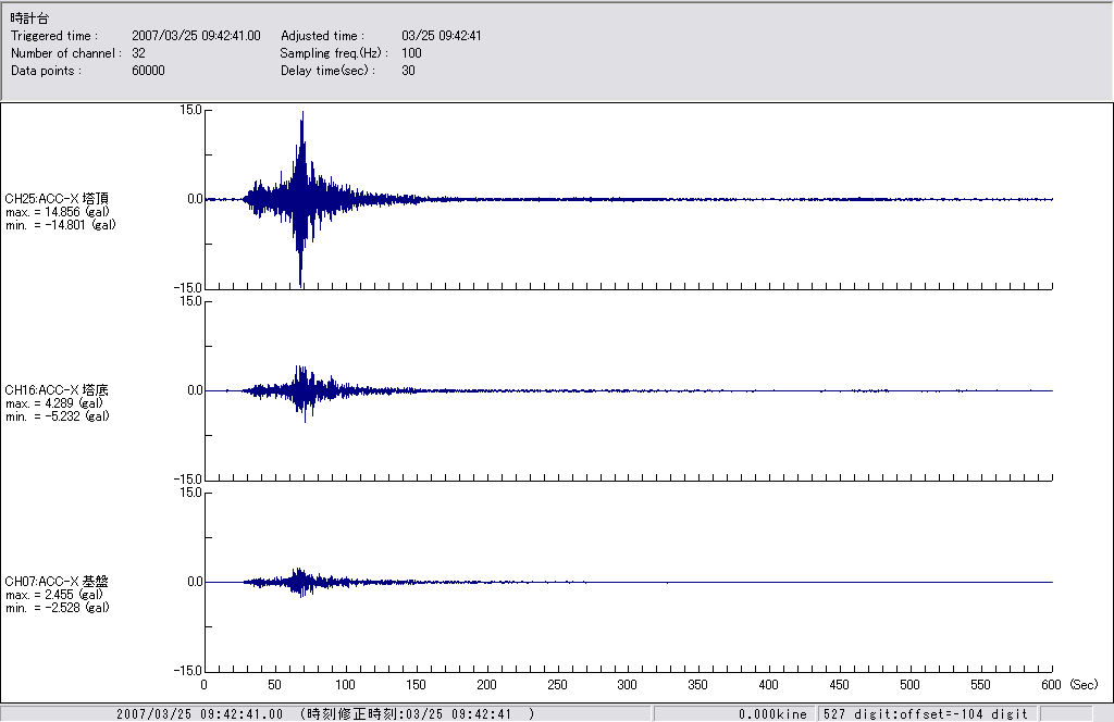 2007年3月25日の地震の記録