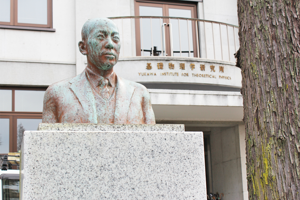 1952(昭和27)年竣工。1949年の湯川秀樹教授のノーベル賞受賞を記念して建てられました。中央の写真の胸像は、湯川秀樹 元基礎物理学研究所教授(1907~1981)。専門は理論物理学。1949年、日本人として最初のノーベル物理学賞を受賞しました。
