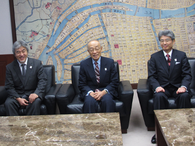 大阪大学の適塾および大阪大学中ノ島センターで、井村会頭、平野総長との鼎談を行いました。オール関西で医学会総会を開催することについて熱く語り合いました。
