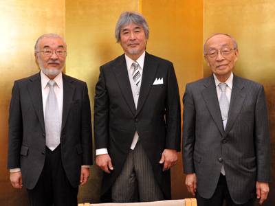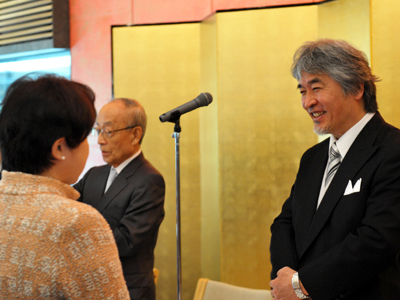 今年も、新年名刺交換会に出席し、名誉教授の諸先輩方はじめたくさんの教職員と語り合い、大変楽しい時間を過ごしました。また、歴代の総長ともお話しする機会に恵まれました。 教職員との懇談の様子 歴代総長と(尾池元総長(左)、井村元総長(右))