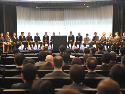 事務本部等の事務職員を対象に年頭挨拶を行いました。今年は申年ということで、「見ざる聞かざる言わざる」三猿を取り上げ、新年の抱負を述べました。 その後、各理事、事務本部等の各部長から新年の抱負を発表してもらいました。