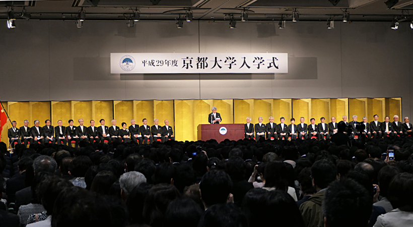 本日、京都大学に入学された2,930名の皆さん、入学誠におめでとうございます。ご来賓の井村裕夫元総長、松本紘前総長、名誉教授、ご列席の副学長、学部長、部局長、および教職員とともに、皆さんの入学を心よりお祝い申し上げます。同時に、これまでの皆さんのご努力に敬意を表しますとともに、皆さんを支えてこられましたご家族や関係者の皆さまにお祝い申し上げます。