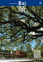 湯川秀樹教授の日本初のノーベル物理学賞受賞を記念して、1952年に京都大学北部構内につくられた「湯川記念館」を前身に、京都大学基礎物理学研究所が翌年に誕生。半世紀後の2011年4月に、7代目所長を務めた益川敏英京都大学名誉教授の同賞受賞を記念して、全学共用スペースとしてこの記念館が完成した。玄関で出迎えるのは、数十年この地に根 を張るウツクシマツ(アカマツの一品種。自生する滋賀県湖南市では天然記念物に指定)。移植の経緯は定かではないが、堅牢な窓枠に映えるやわらかな枝ぶりが心地よい。