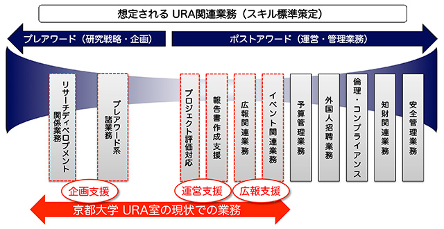 ― まず、文部科学省の定義によると・・・『URAは、大学等において、研究者とともに研究活動の企画・マネジメント、研究成果活用促進を行うことにより、研究者の研究活動の活性化や研究開発マネジメントの強化等を支える業務に従事する人材を指します。(文部科学省より)』とされています。