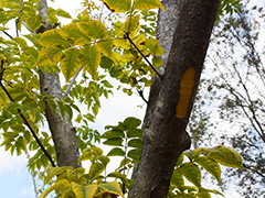こちらは 「オウバク」 。樹皮を剥ぎ取り、乾燥させて用います。ベルベリンをはじめとする薬用成分が含まれ、強い抗菌作用を持つため、主に健胃整腸剤として用いられます。