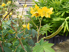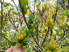 こちらは 「クチナシ」 。利尿作用、胆汁の流れを良くする作用があります。お正月の栗きんとんの色つけに使われるのもコレなんですよ。
