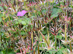 不思議なフォルムの 「ゲンノショウコ」 。その形から、「みこし草」とも呼ばれます。胃薬や下痢止めとして。