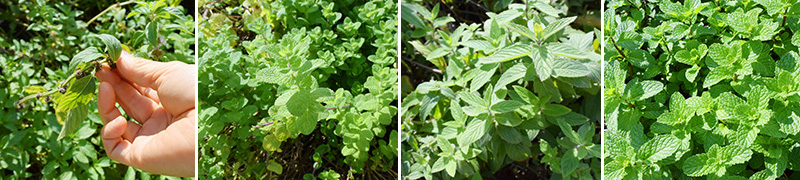 こちらはすべて 「ミント」 。一番左の「ハッカ」が最もメントールが多く、「生薬の気剤」とされています。4種類、全てニオイが違うのにビックリ!!! 一番右のミントが最もメジャーで、先生曰く「レアチーズケーキにのってるやつ!」とのこと(笑)。