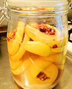 輪切りにしたカリンとはちみつを、熱湯消毒したビンの中に交互に入れていきます。目安はカリンがはちみつに完全にかぶるくらいです。あとは蓋をして冷暗所に置きます。1~2ヵ月たてば飲み頃。お湯で薄めていただきます。