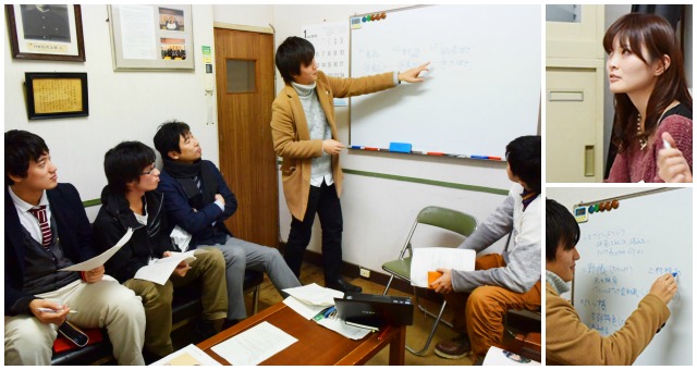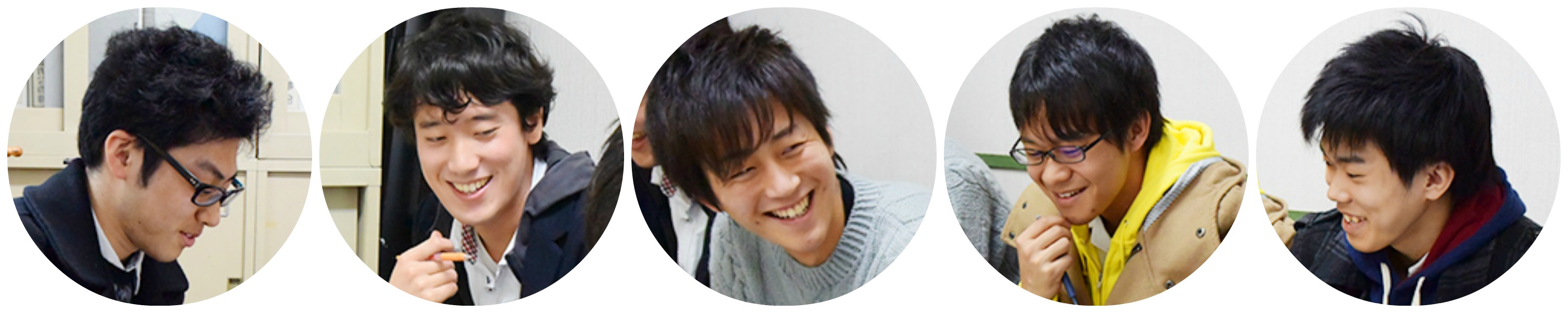 左から、参加メンバーの内野さん、大西智也さん(理学2回)、中島さん、吉川さん、上村さん。紅一点の石原さん(右上)。この日は吉川さんを書記に任命!(右下)