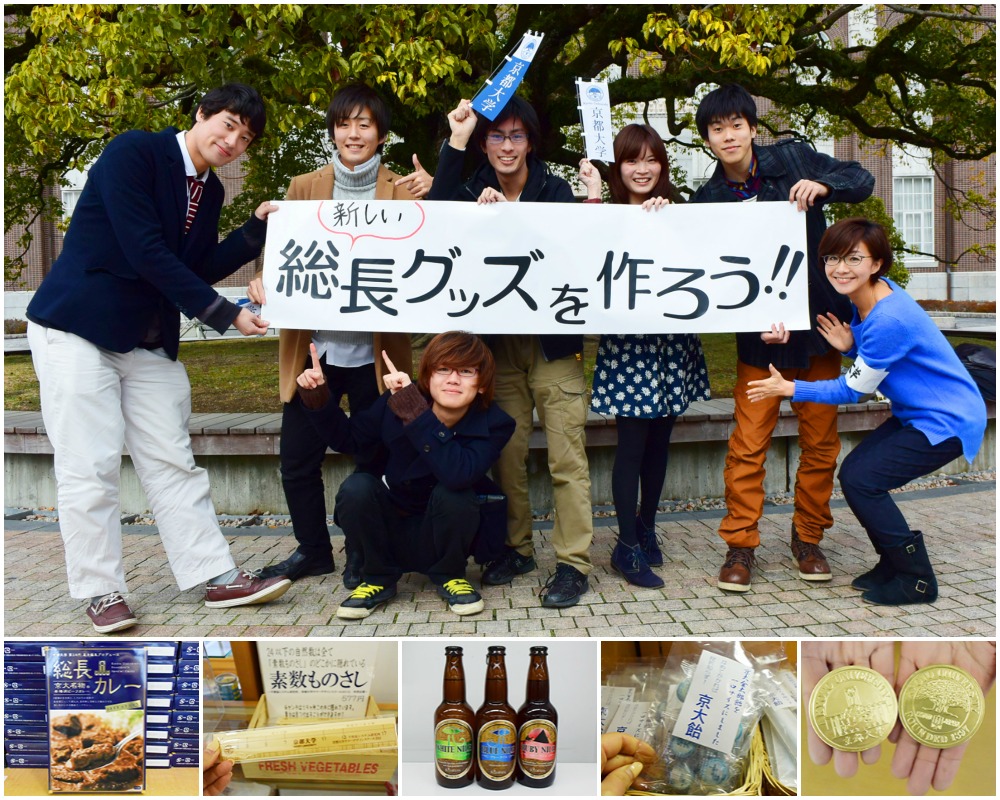 学生たちと総長のアイデアがぞんぶんに盛り込まれた、新しい京大総長グッズ。