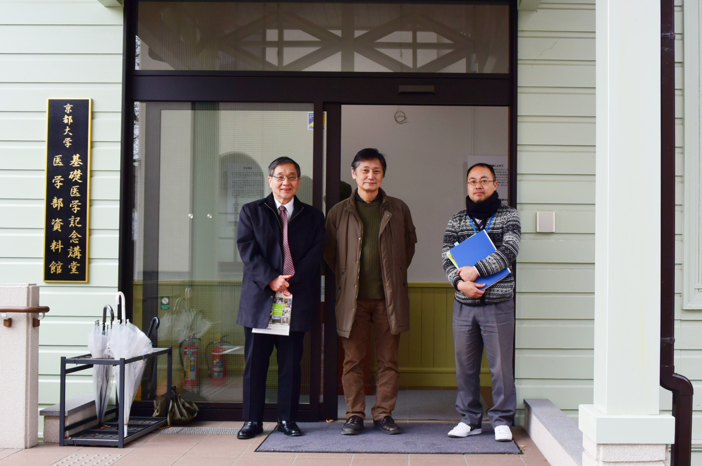 今回、館内を案内してくださったのは、萩原正敏 医学部資料館長(医学研究科教授)、小泉昭夫 同副館長(医学研究科教授)、そして医学研究科施設掛職員の菊本惠二さん 。医学研究科の歴史に詳しい先生方の説明付きでツアー開始です。