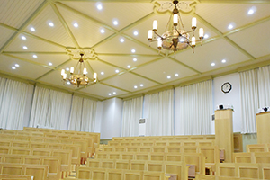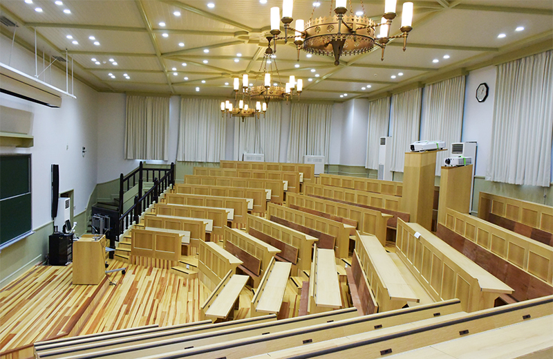 館内を進んですぐ左手にあるのが、広く開放的な基礎医学記念講堂(階段教室)。