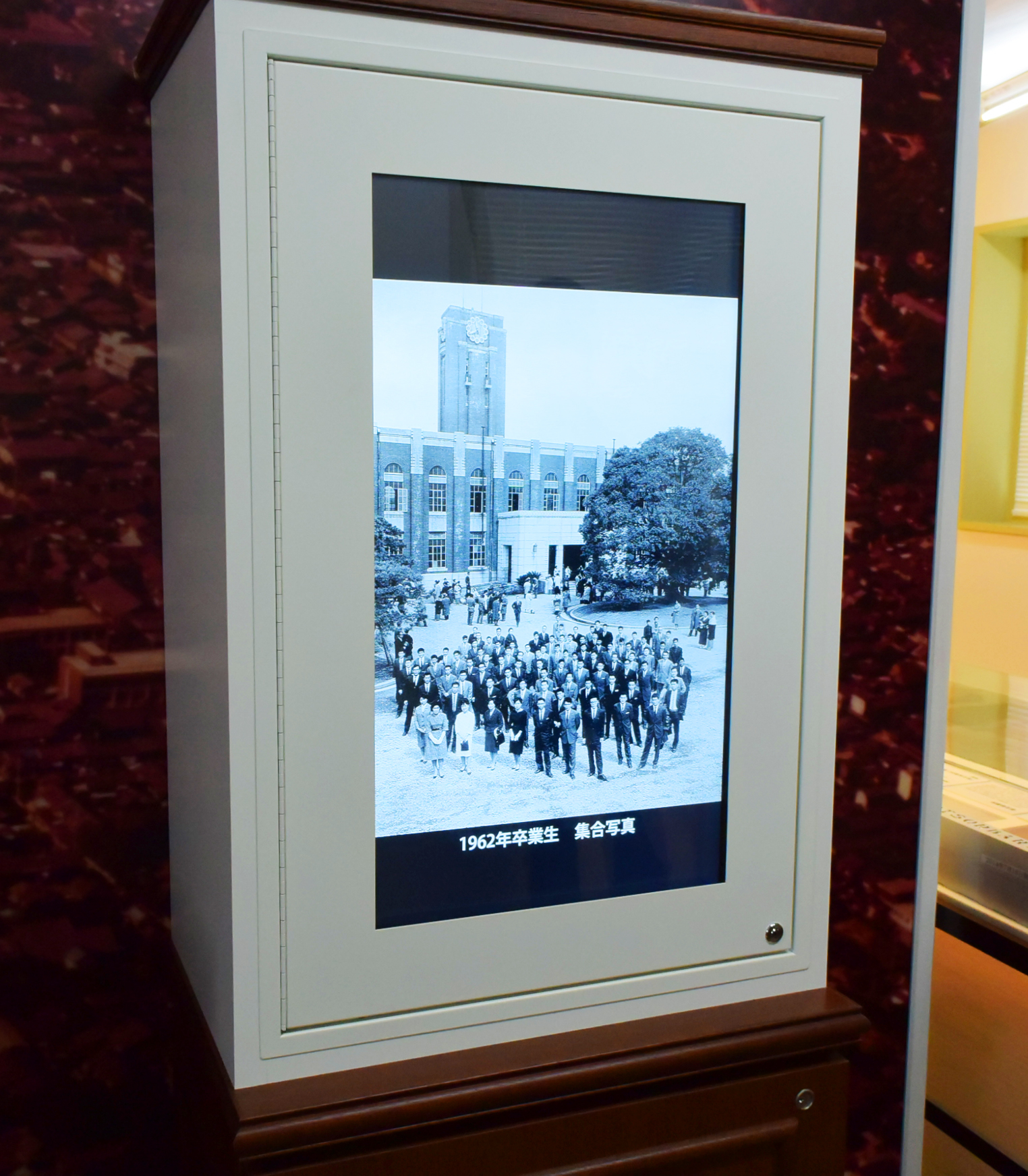 このタッチパネルに映し出されている古い写真は、OBの方から寄贈してもらったもの。