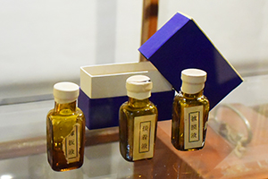 当時使われていた器具や薬品などが陳列する展示ケースもありました。現在ではあまり見られないものばかり。