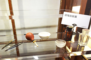 現場指紋器。今ではデジタルになっているものも、当時はこんなアナログなつくりだったのですね・・・。