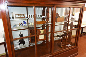 階段教室のちょうど裏側(教室下の通路だったところ)にあたるところが、医学研究科の歴史資料を展示している医学部資料館となっています。