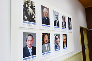 歴代の文化勲章受章者、文化功労者選出者の紹介パネル。