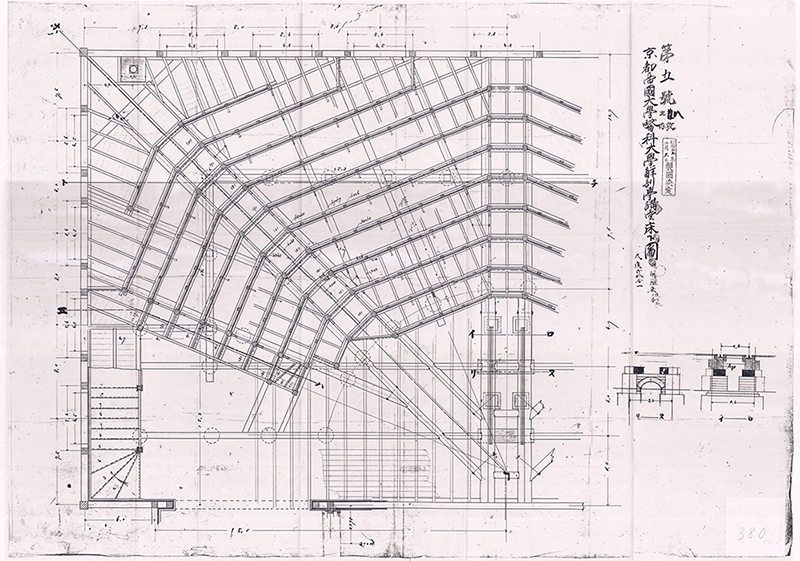 この建物は、旧石油化学教室の設計などをはじめ、京大の建築に多大な功績を残した 山本治兵衛 の設計によるもの。細部に趣のある建物であったことから、できる限り昔のままの意匠を忠実に復元しつつ、耐震を含めた改修をして、このたび資料館として生まれ変わりました。