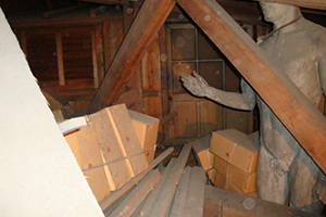 旧解剖学講堂は、長い間使われぬままであったこともあり、改修着工時には床下(階段下の収納スペース)からは予期せぬいろんなものが出てきたそうです。とにかく、医学部ならではのいろんなものが次々と出てきて、まずはそれらを片付けるところから・・・の波乱のスタートだったとか。