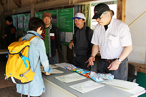 まずは入り口で本日の資料を受け取ります。この日のツアーは芦生研究林の教員や職員が総出で対応。