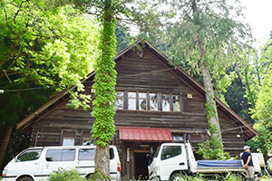 長治谷炊事棟。冬場は屋根に積もった雪をおろすのが大変だそうです。