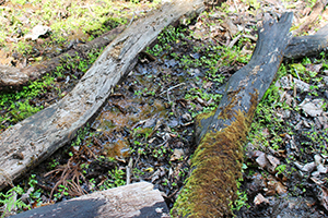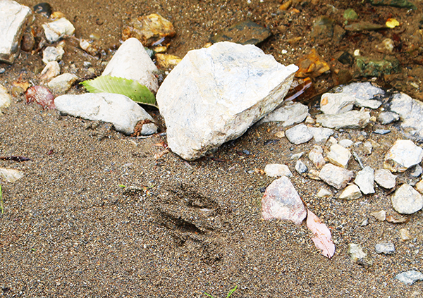 鹿害が大きな問題となっている芦生。ここにも鹿の足跡がありました。