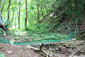2006年から、植生保全のために1集水域を総延長1.5kmの大規模防鹿柵を設置し、鹿排除区を作成。その隣の囲われていない集水域を対照区として比較研究や、植生回復と生態系全体への波及効果を調査しています。