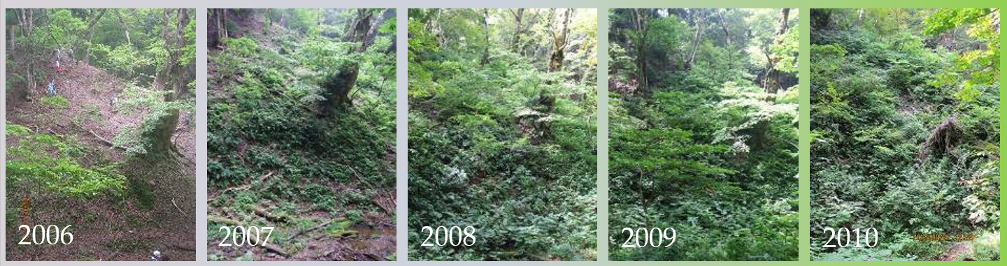 さまざまな苦労の甲斐あって、この9年で植生は見違えるように変化しました。