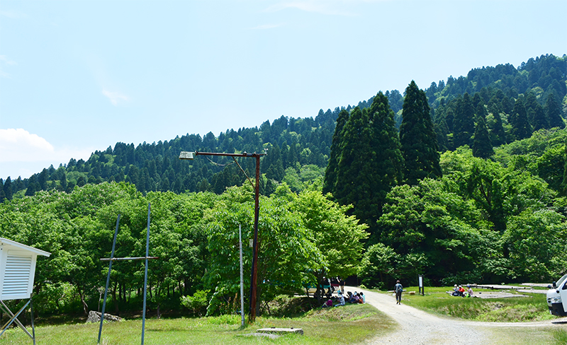 長治谷炊事棟近辺。この日もたくさんの一般入林者が、芦生の自然を満喫していました。