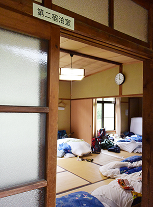 まさに使用中のため、チラッとだけ・・・。宿泊室も広くて快適。宿泊可能な部屋は、和室が全部で四つ・二段ベッドの並ぶ大部屋が二つあります。