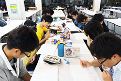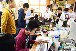 部屋のすみずみまで作業中の部員でひしめきあっています。まさに「集中」そのもの。