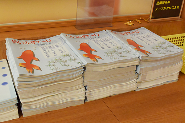食堂に並んだらいふすてーじ7月号。夏らしい爽やかな表紙!