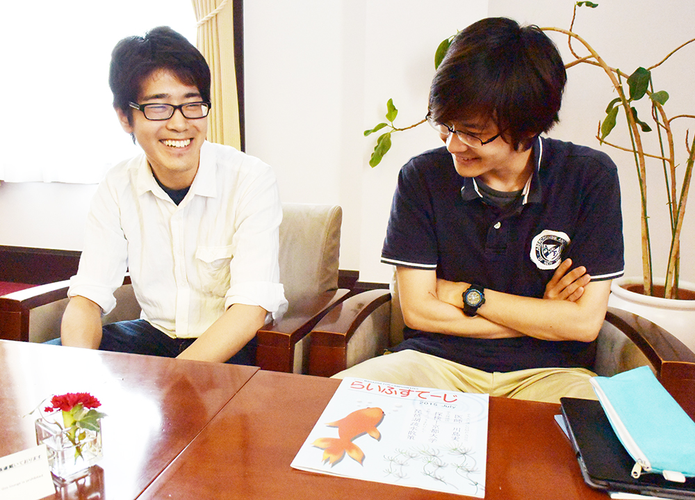 左から、現らいふすてーじ編集委員長 岡田祐哉さん(第31代)、前編集長 前田有輝さん(第30代)