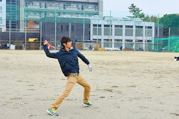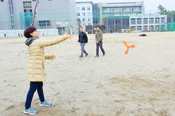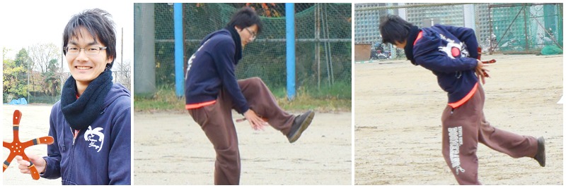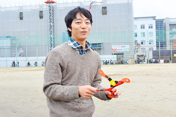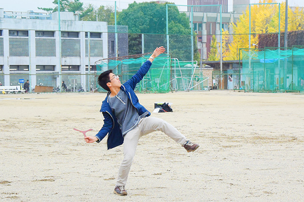 京大にきて初めてブーメランを手にしたという吉田さん。戻ってくる感覚にはまってしまったそう。