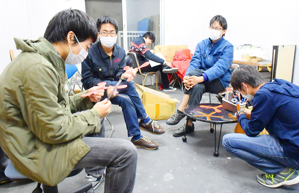 作業場を覗くと、黙々と作業する部員たちが・・・