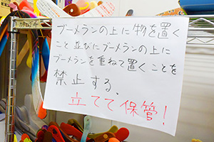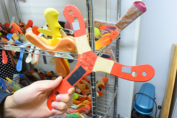 作業場とは別に、「く」が独自で所有する部室には歴代ブーメランが大切に保管されています。