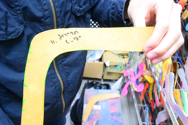 ブーメランに名前をつけている人も多いそう。こちらは「みどりのしっぽ」。