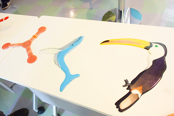ご自身もブーメランが大好きという青山先生。「写真にはブーメランではないものも2点写っています。さて、どれとどれでしょう?」。みなさん、わかりますか?