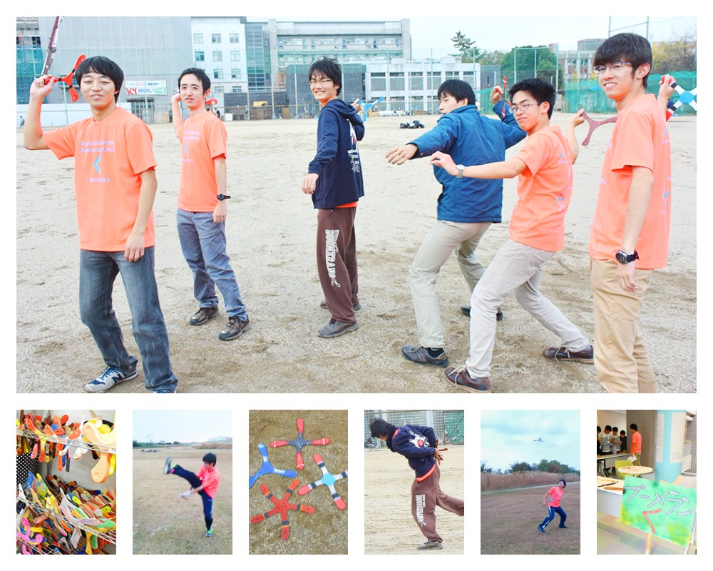 そんなブーメランサークル「く」は、愛するブーメランを作り、投げ、キャッチするサークルです。 「ブーメランを楽しむ」をモットーに、メンバー同士が楽しく交流しながら活動しています。