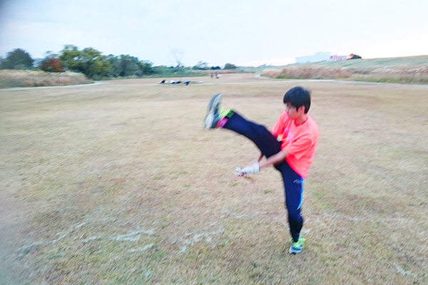 この日は雨の翌日とあって、吉田グラウンドは水浸し。・・・ですが、野球部の練習がないため、「く」にとっては、グランド全面を使えるまたとない練習日和。
