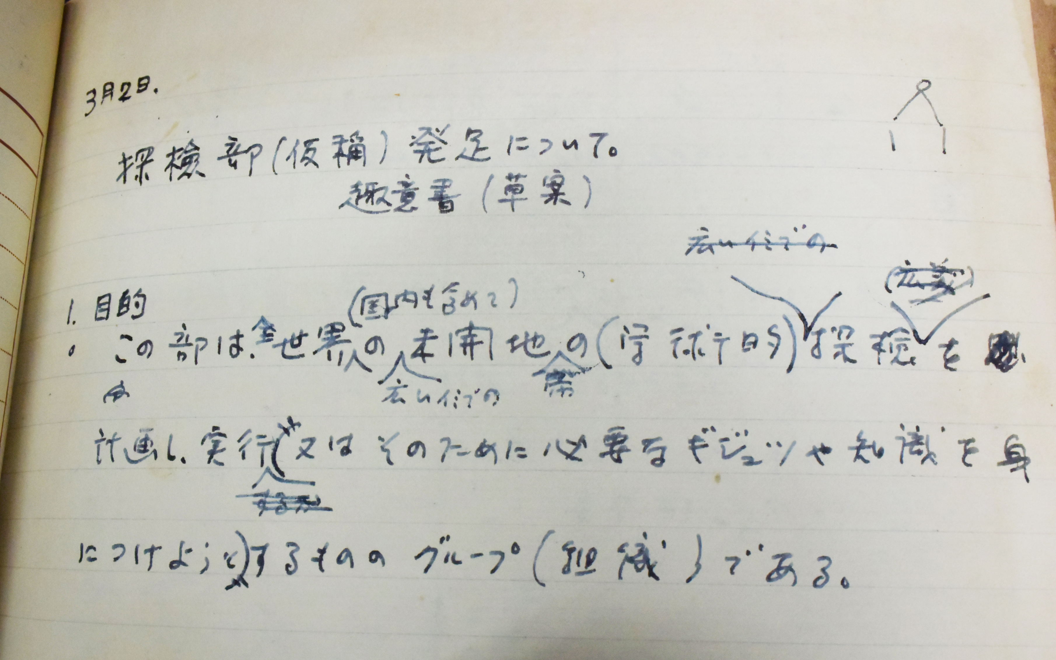 発足当時の探検部の設立目的は、その趣意書(草案)によると、