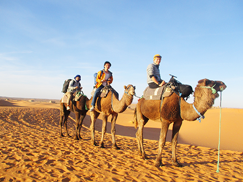 これも海外活動。モロッコと西サハラ地域に3人で渡航し、各自の興味分野の知見を深める体験。この写真はラクダツアーに参加したときの1枚。これに着想を得て、今は砂漠ラクダ旅行を計画中だとか。