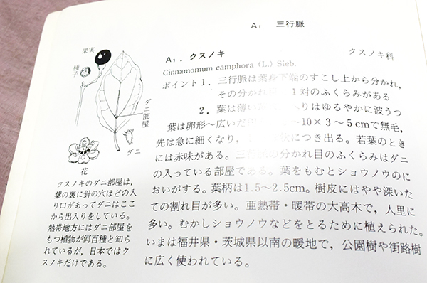 余談ですが、京大のシンボル「クスノキ」の葉の裏には、「ダニ部屋」と呼ばれるダニが出入りする小さな穴があるそうです・・・。