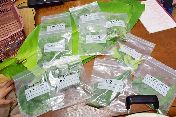 ◎タイ、ミャンマーでは、「バナナ」「シダ」「チーク」「稲わら」「クワ科」などを使うらしい。